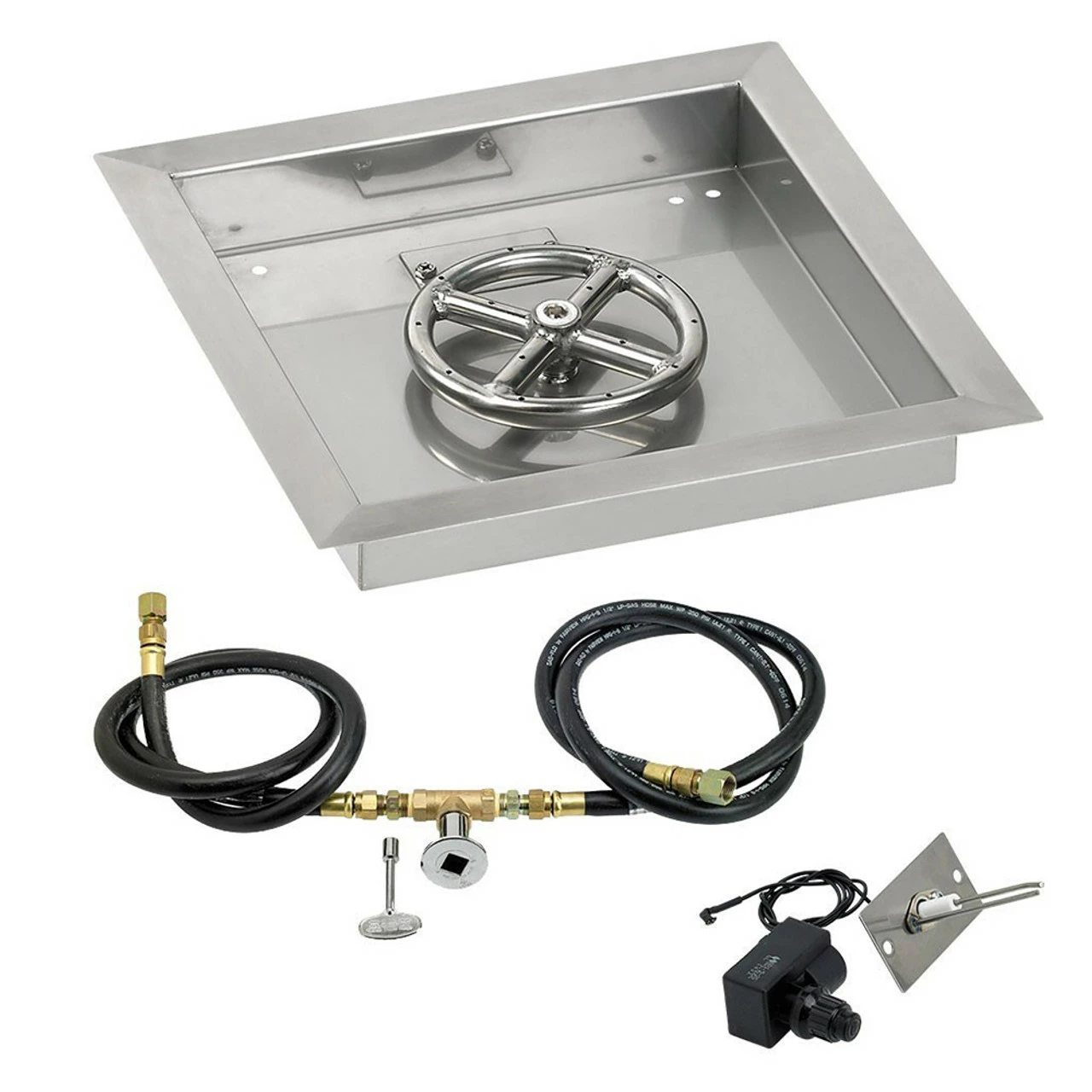 12″ Square Drop-In Pan with Spark Ignition Kit (6″ Fire Pit Ring) Natural Gas – By American Fireglass