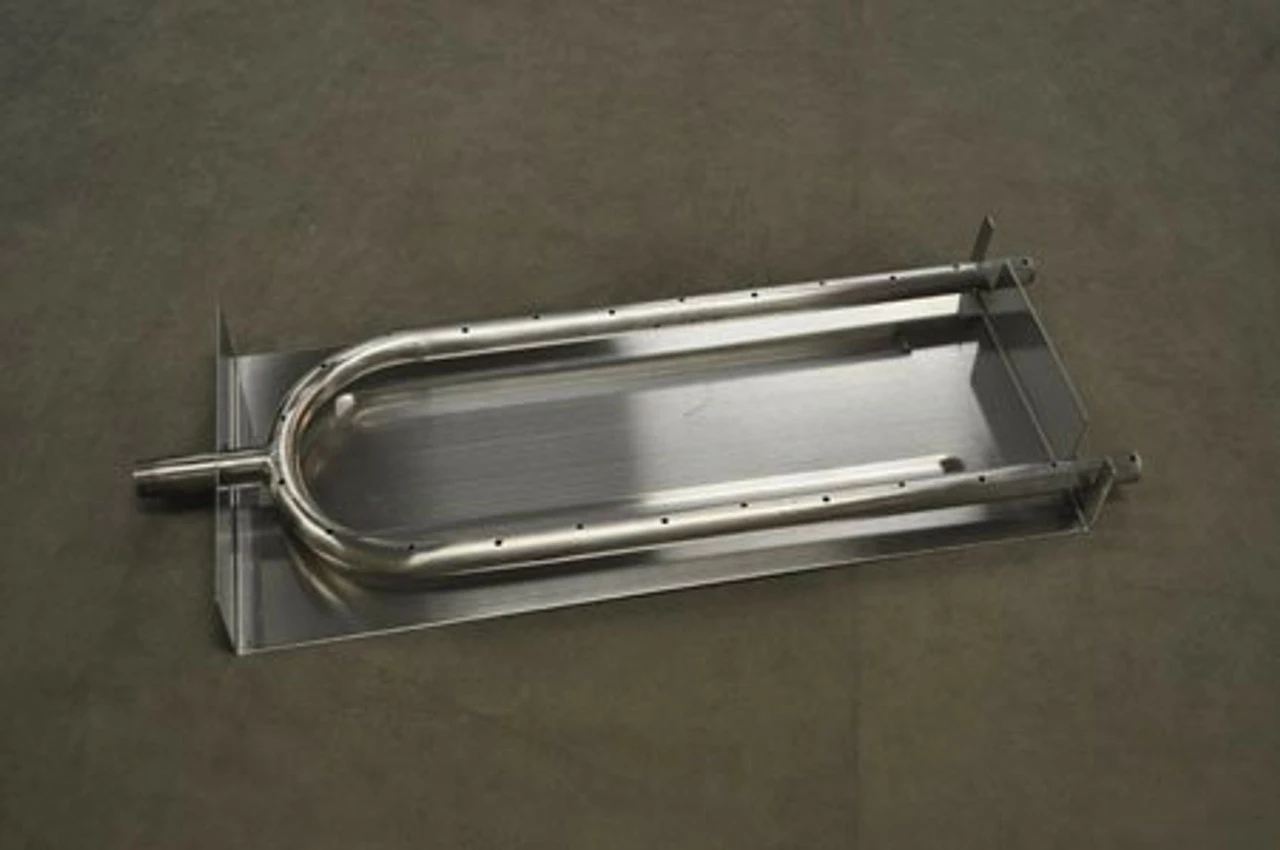 To accompany the dual burners, we now offer a burner pan in 304 stainless steel designed specifically for our dual burners – it suspends burner 3/4″ above fireplace floor. measures 18″ x 8″, ends are 2″ high and allows for pilot assembly mounting. Fits all HPC dual burners