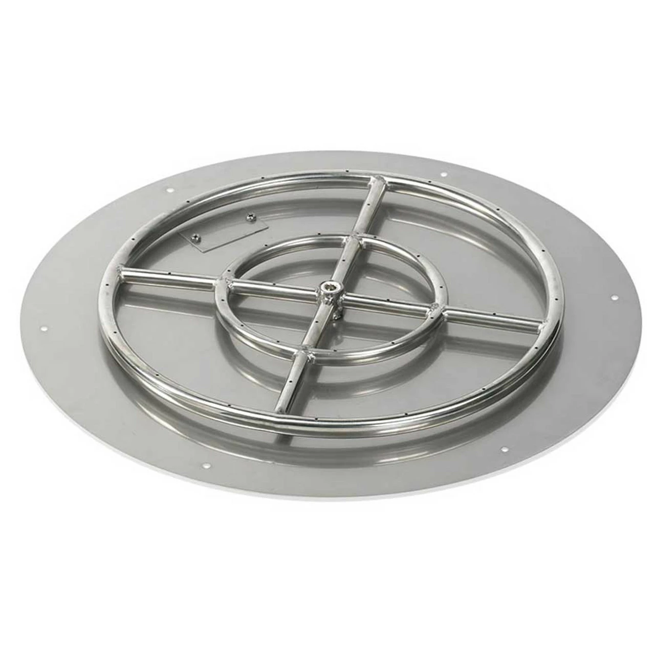 18″ Ring Burner – This 18″ fire pit ring burner fits on top of your fire pit burner pan. It is made of high grade 304 stainless steel which ensures its durability under extreme heat and severe weather conditions. The cross bar design provides for better flame distribution. The holes in the ring are drilled, not punched, which prevents any loud whistling noises. The ring burner works best under 2 – 4 inches of fire glass.