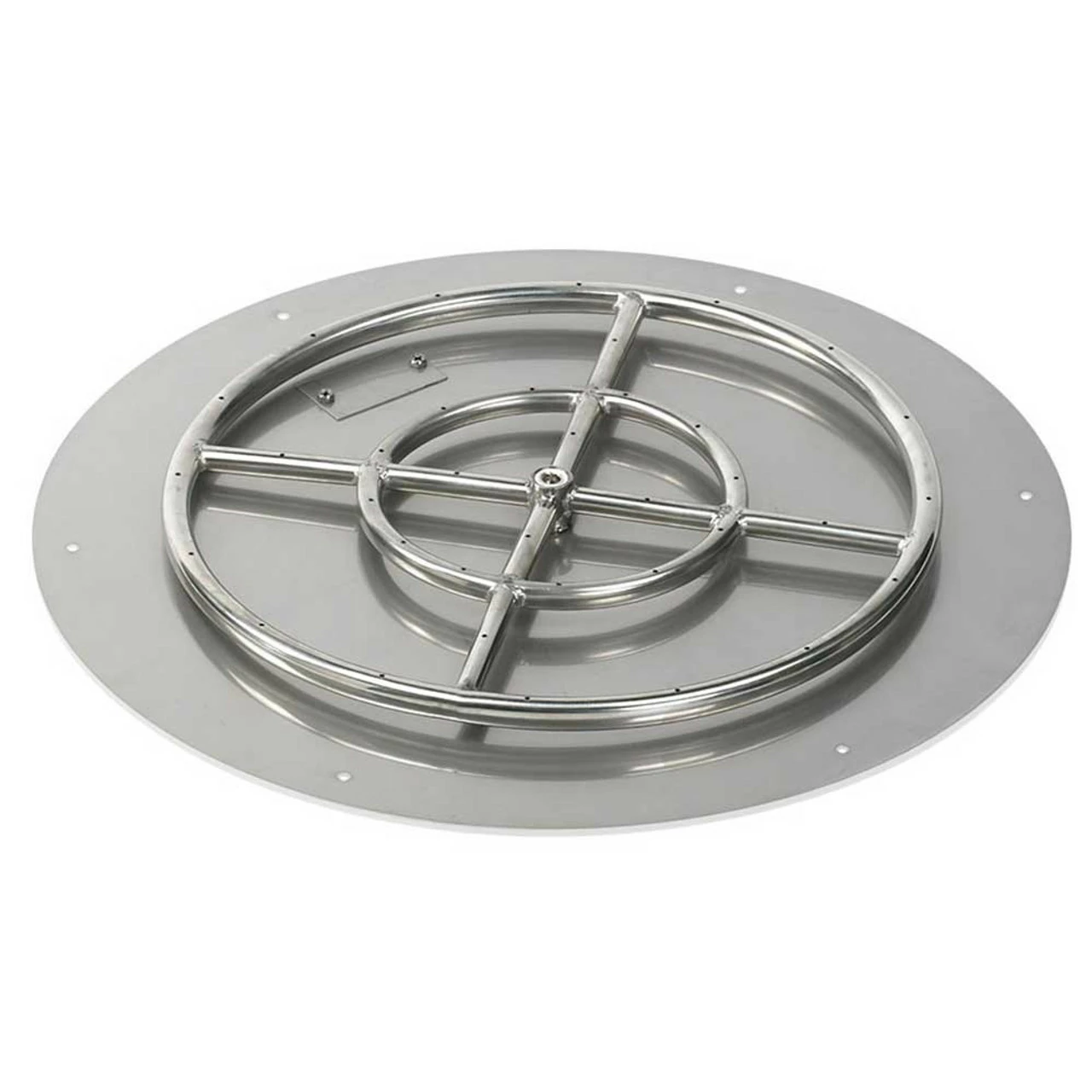 18″ Ring Burner – This 18″ fire pit ring burner fits on top of your fire pit burner pan. It is made of high grade 304 stainless steel which ensures its durability under extreme heat and severe weather conditions. The cross bar design provides for better flame distribution. The holes in the ring are drilled, not punched, which prevents any loud whistling noises. The ring burner works best under 2 – 4 inches of fire glass.