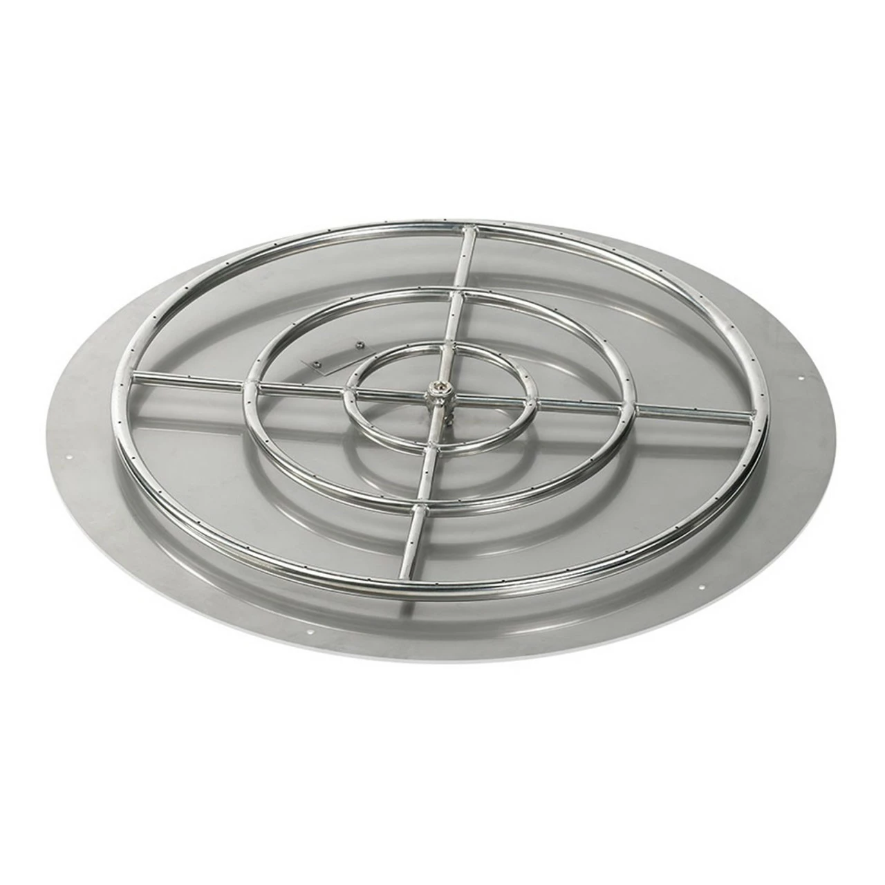 30″ Ring Burner (Requires 3/4″ Gas Line) – This 30″ fire pit ring burner fits on top of your fire pit burner pan. It is made of high grade 304 stainless steel which ensures its durability under extreme heat and severe weather conditions. The cross bar design provides for better flame distribution. The holes in the ring are drilled, not punched, which prevents any loud whistling noises. The ring burner requires a 3/4″ gas line and works best under 2 – 4 inches of fire glass.