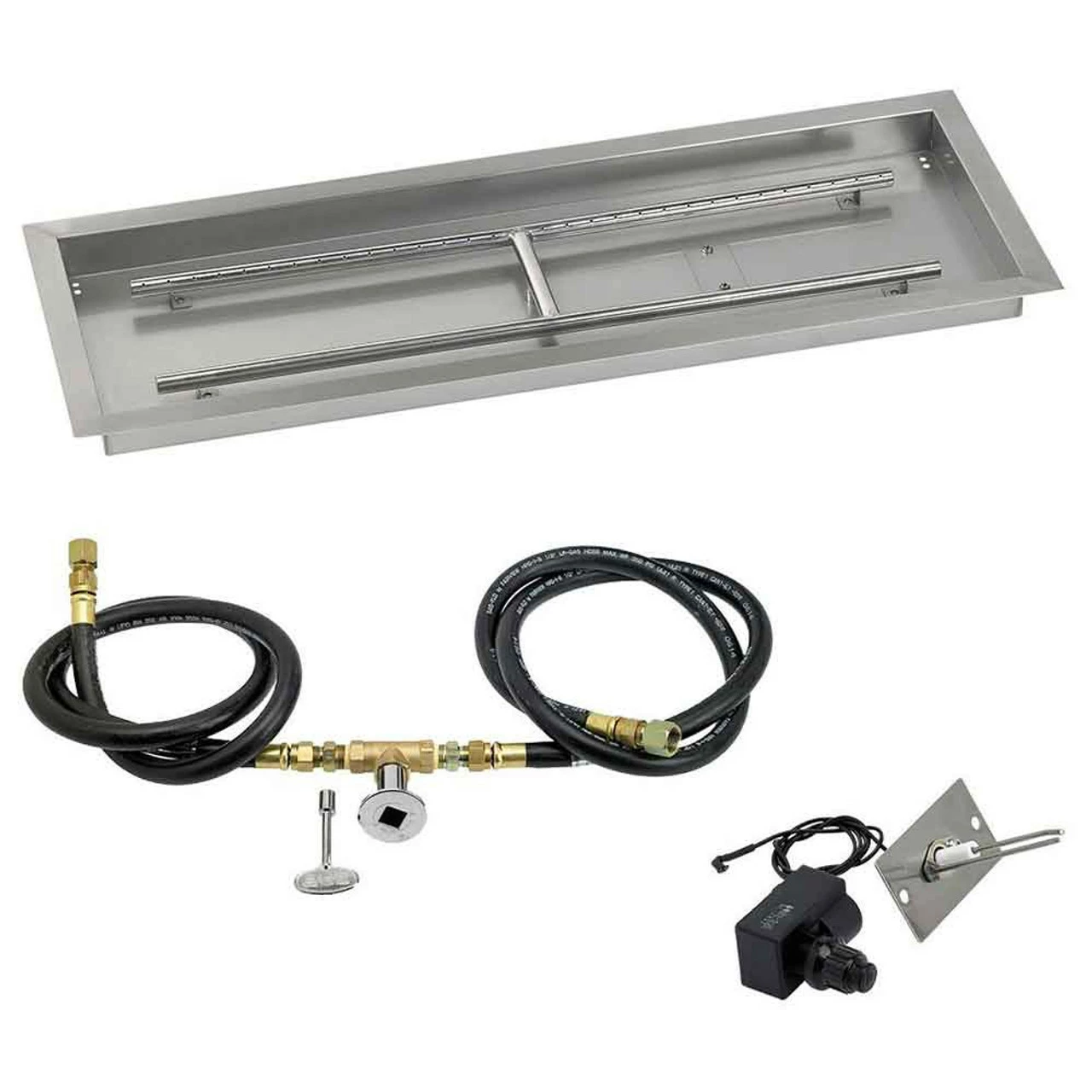 Our 36″ x 12″ rectangular drop-in pan with spark ignition kit (natural gas) comes fully equipped with all the following components: