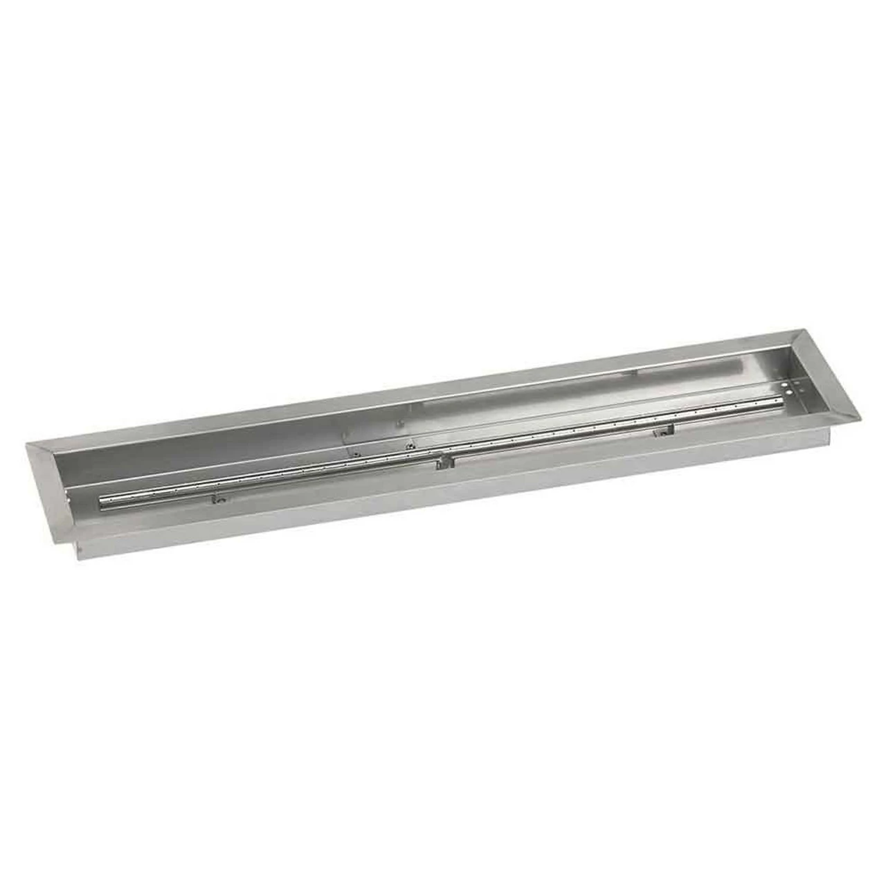36″ x 6″ Linear Channel Drop-in Burner Pan w/ Built-in T-Burner – Our 36″ x 6″ linear drop-in burner pan comes with a convenient ‘lip’ so it can be installed into your DIY fire pit and easily removed after use. These burner pans greatly reduce the amount of fire glass your customers will need to fill their fire pit by creating a false bottom which gives the illusion that the fire pit is full, whereas only the top part of it is. All our linear drop-in burner pans are made of 304 stainless steel, which means they are very durable and can withstand extreme heat as well as harsh weather without sustaining any damage or rust. Each comes with a built-in T-burner, 1/2 inch gas inlet and drilled weep holes to prevent water accumulation.
