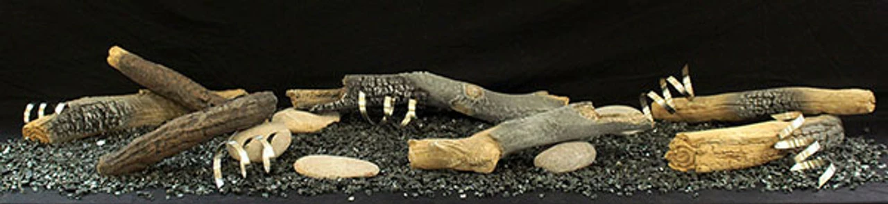 The available Rustic Log Set includes a unique assortment of ceramic fiber logs and stones, plus coiled slivers of stainless steel that react to the light and flames to bring your fireplace to life.