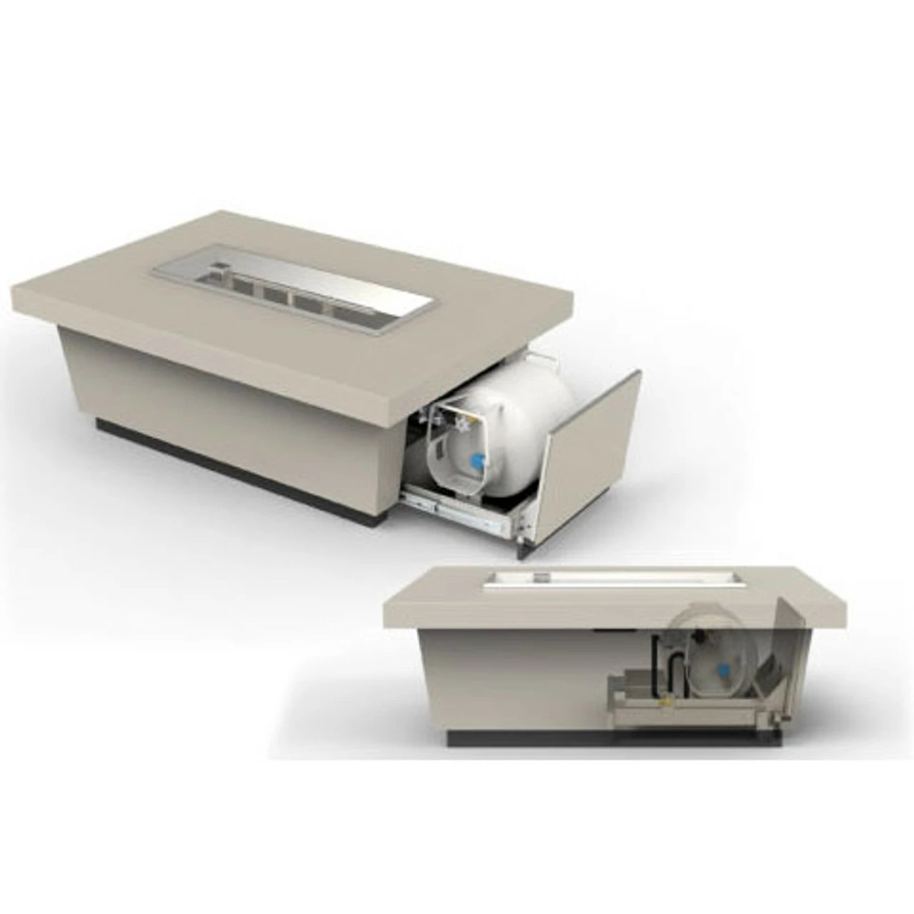 NEW Contempo LP Select* (drawer tank model) Provide this popular low profile/coffee height fire table to house a vertical LP tank with a convenient drawer.