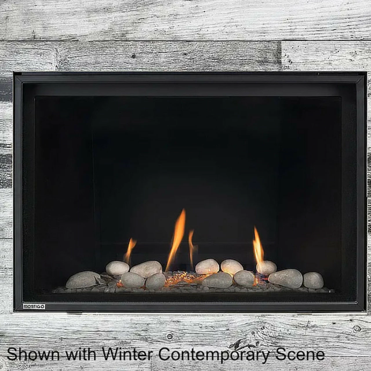 Introducing the DELRAY Square DRSQ38. This Flexible gas fireplace features sleek contemporary styling and a small footprint that’s perfect for new construction and retrofit installations at minimal impact to floor space. The DELRAY Square is a high efficiency, mobile home compatible fireplace that is ready to customize with any of our stunning logsets or contemporary scenes. Combustible wood facing can be installed right down to the glass opening.