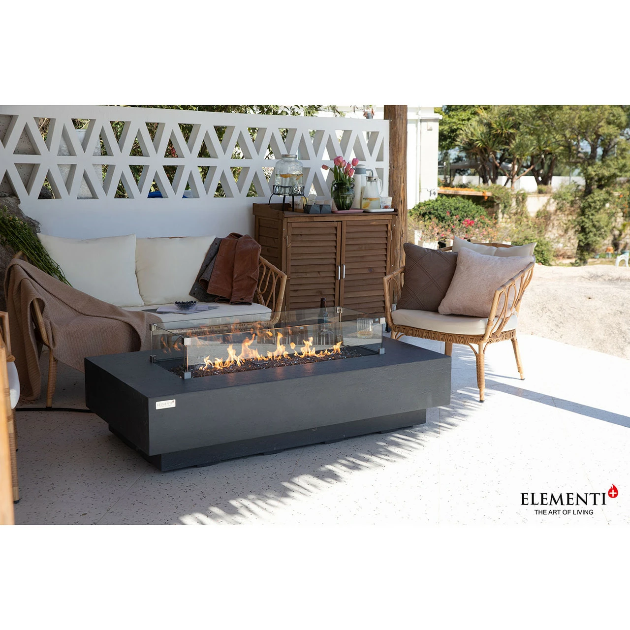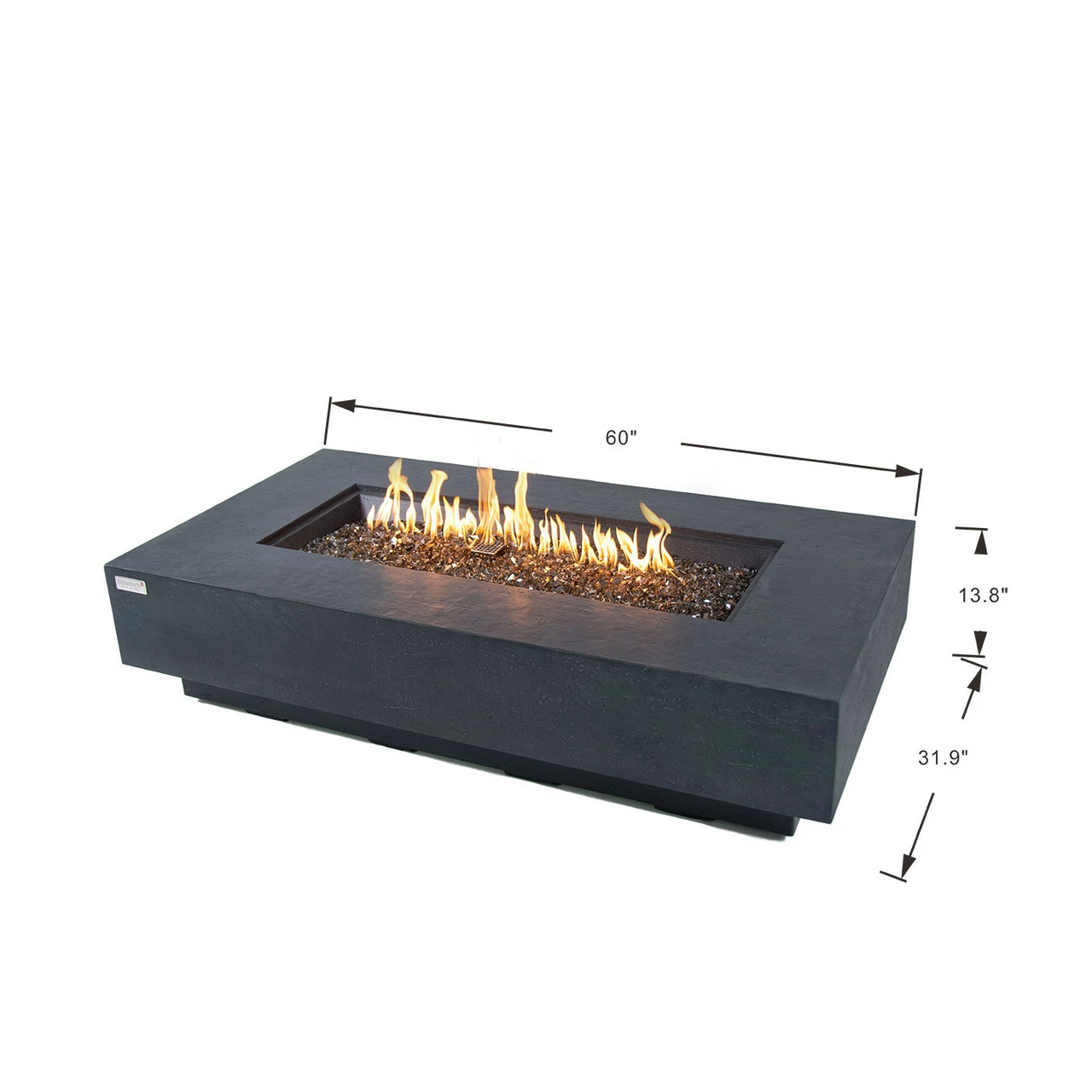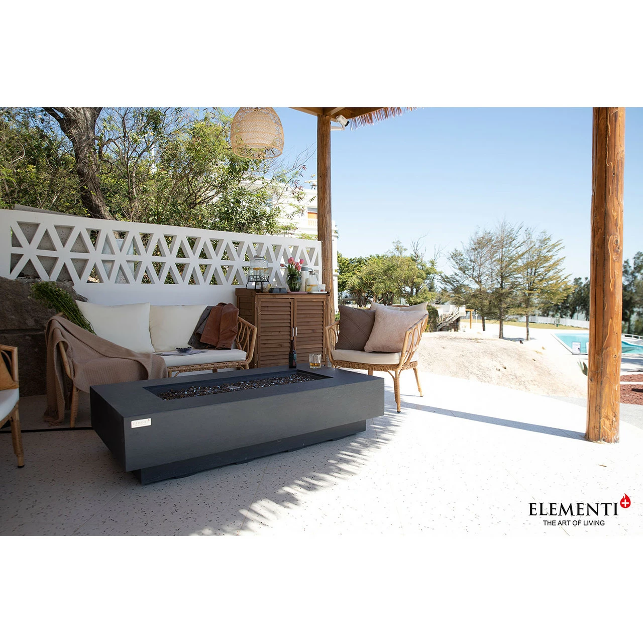 The Positano is the new and improved rectangular fire table featured on the Elementi Plus line. The body is handcrafted to precision using glass-fiber reinforced concrete, which is both lightweight and durable against the elements. The burner is constructed of 16-gauge 304 stainless steel that provides a generous BTU output of 60,000, the warmth of the flames can be felt across the patio or deck. The Positano comes in a bold dark gray color that will surely catch the attention of your guests!