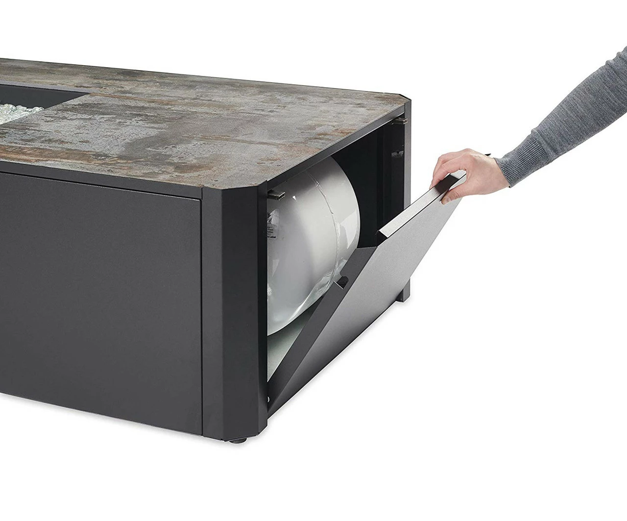 - 20 lb. horizontal LP cylinder with OPD fits in base, does not fit standard 20 lb. LP tank in base