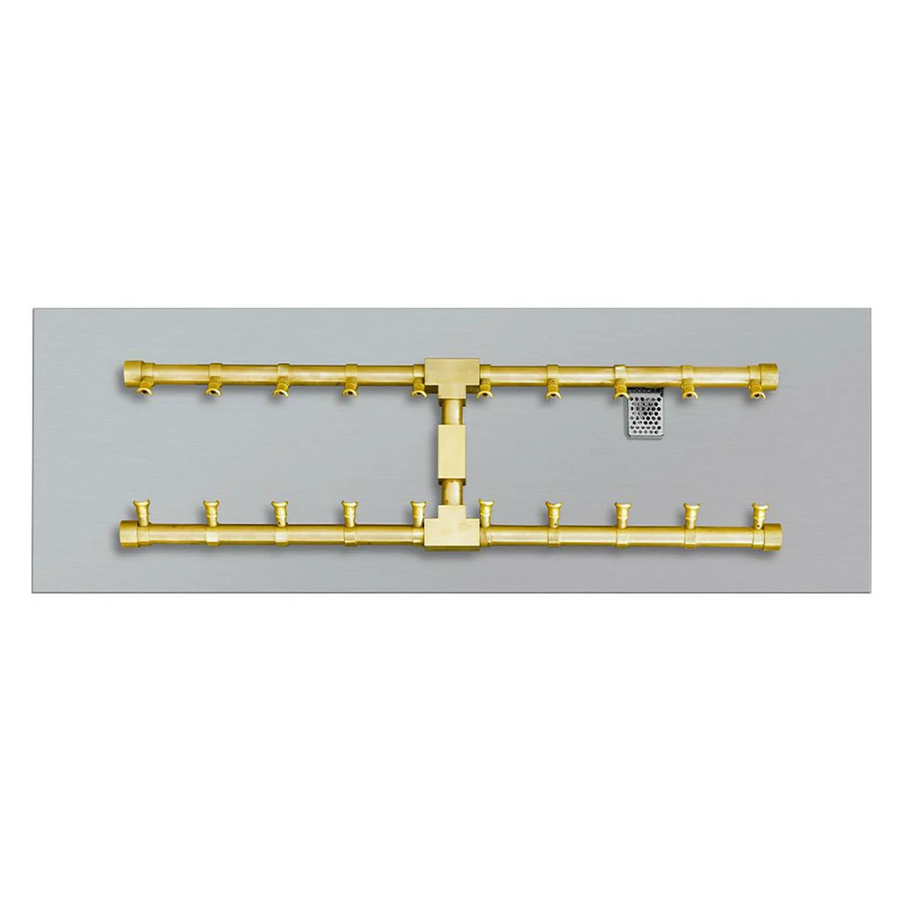 Firegear FG-LOF-BHFMT Pro Series Line of Fire Match Light Ignition Gas Fire Pit Burner Kit with Flat Pan & Brass H-Shaped Burner provides a high quality burner system to complete your gas fire pit project. This system features a heavy-duty brass burner for commercial-quality durability and a premium stainless steel pan. The impressive burner design offers a full and natural-looking flame appearance, while the included Match Throw Ignition (MT) system offers simplicity, reliability, and economical pricing for your outdoor setup.