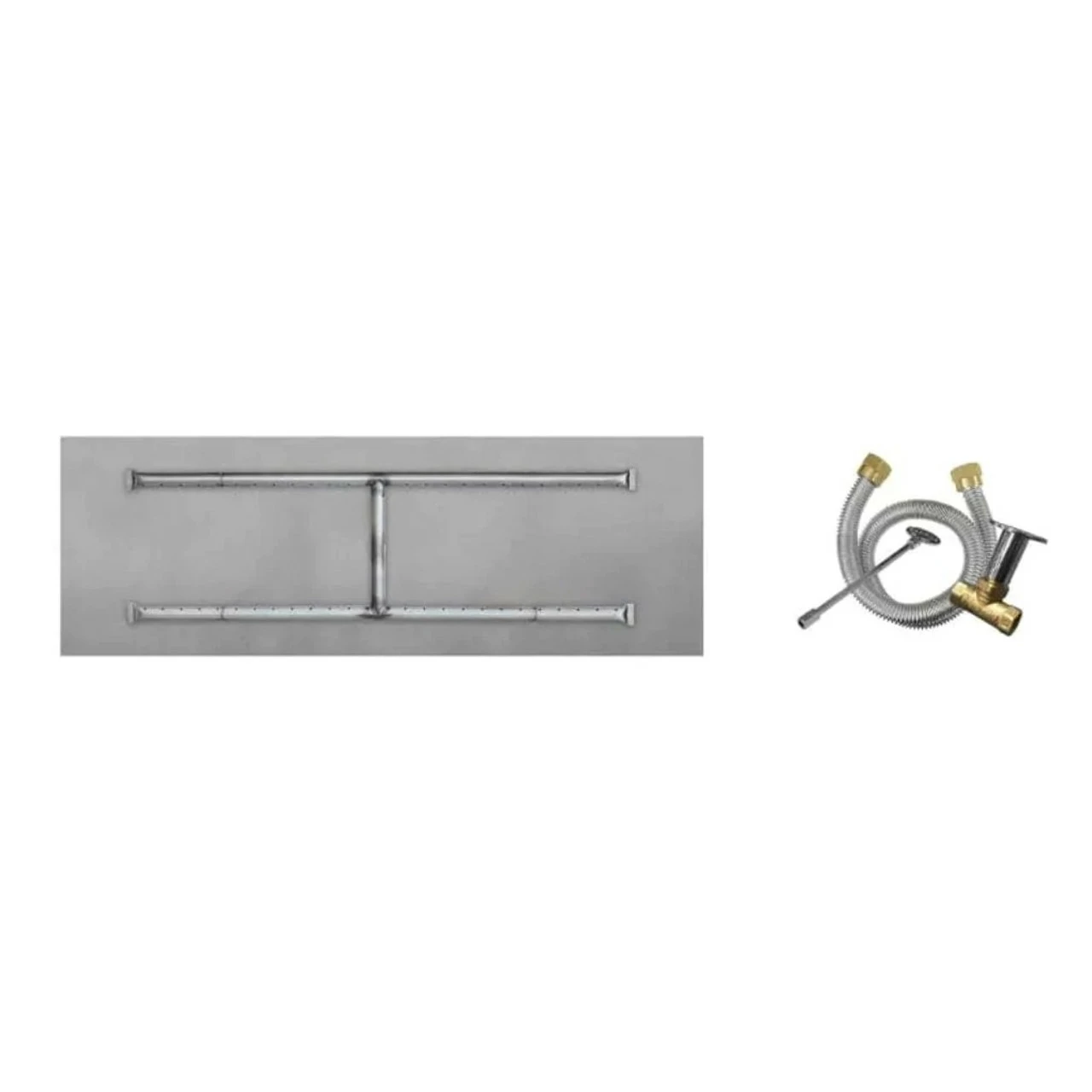 Firegear FG-LOF-SHFMT Line of Fire Match Light Ignition Gas Fire Pit Burner Kit with Flat Pan & Stainless Steel H-Shaped Burner provides a high quality burner system to complete your gas fire pit project. This system features a heavy-duty stainless steel burner for commercial-quality durability and a premium stainless steel pan. The impressive burner design offers a full and natural-looking flame appearance, while the included Match Throw Ignition (MT) system offers simplicity, reliability, and economical pricing for your outdoor setup.