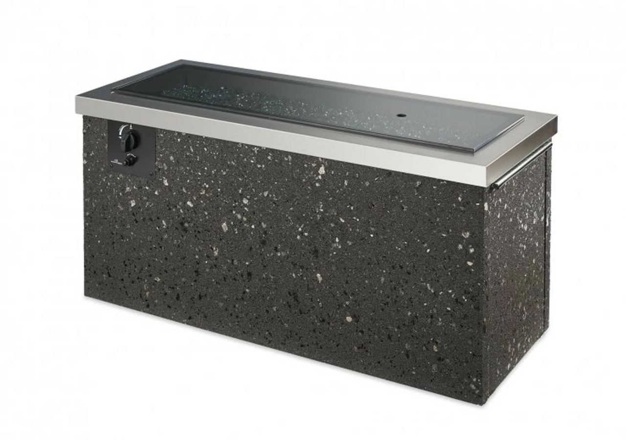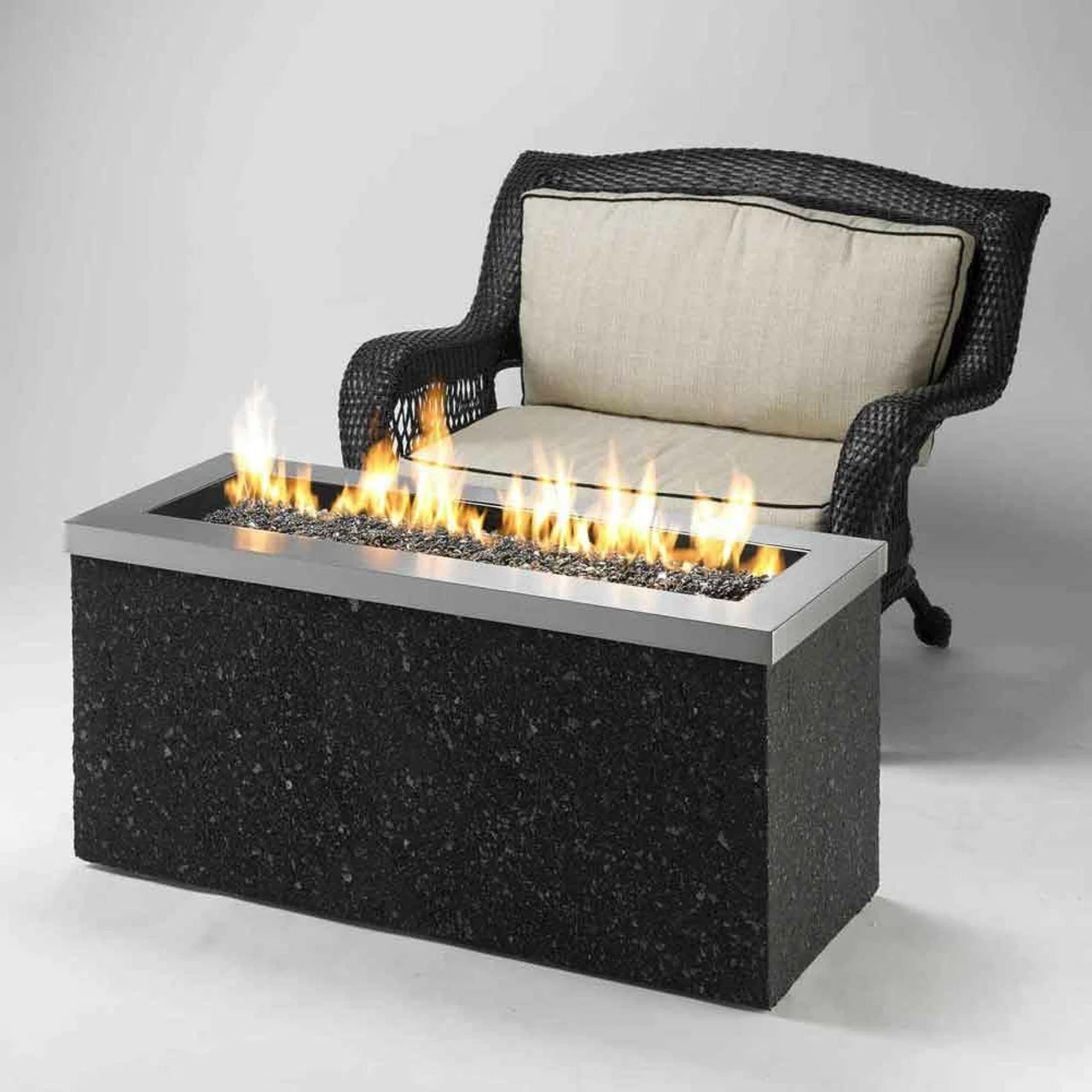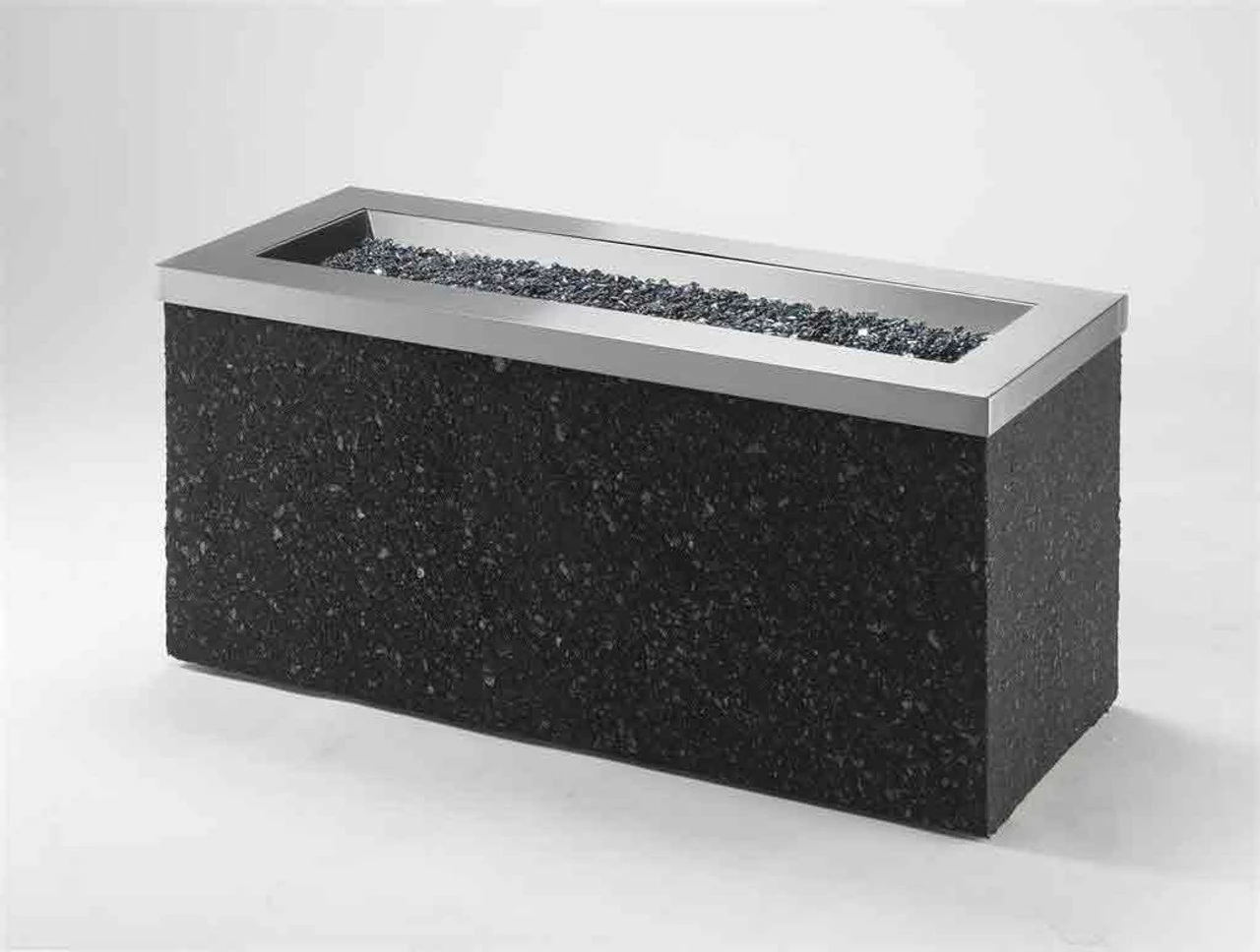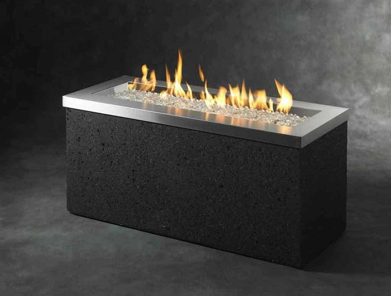 A showcase of fire, the Key Largo gas fire pit features a beautiful, glowing fire that dances atop a bed of fire glass. The focal point of the design is a striking 12โ X 42โ stainless steel Crystal Fire burner. This simple, modern design will look great in any outdoor living space. Award-winning.