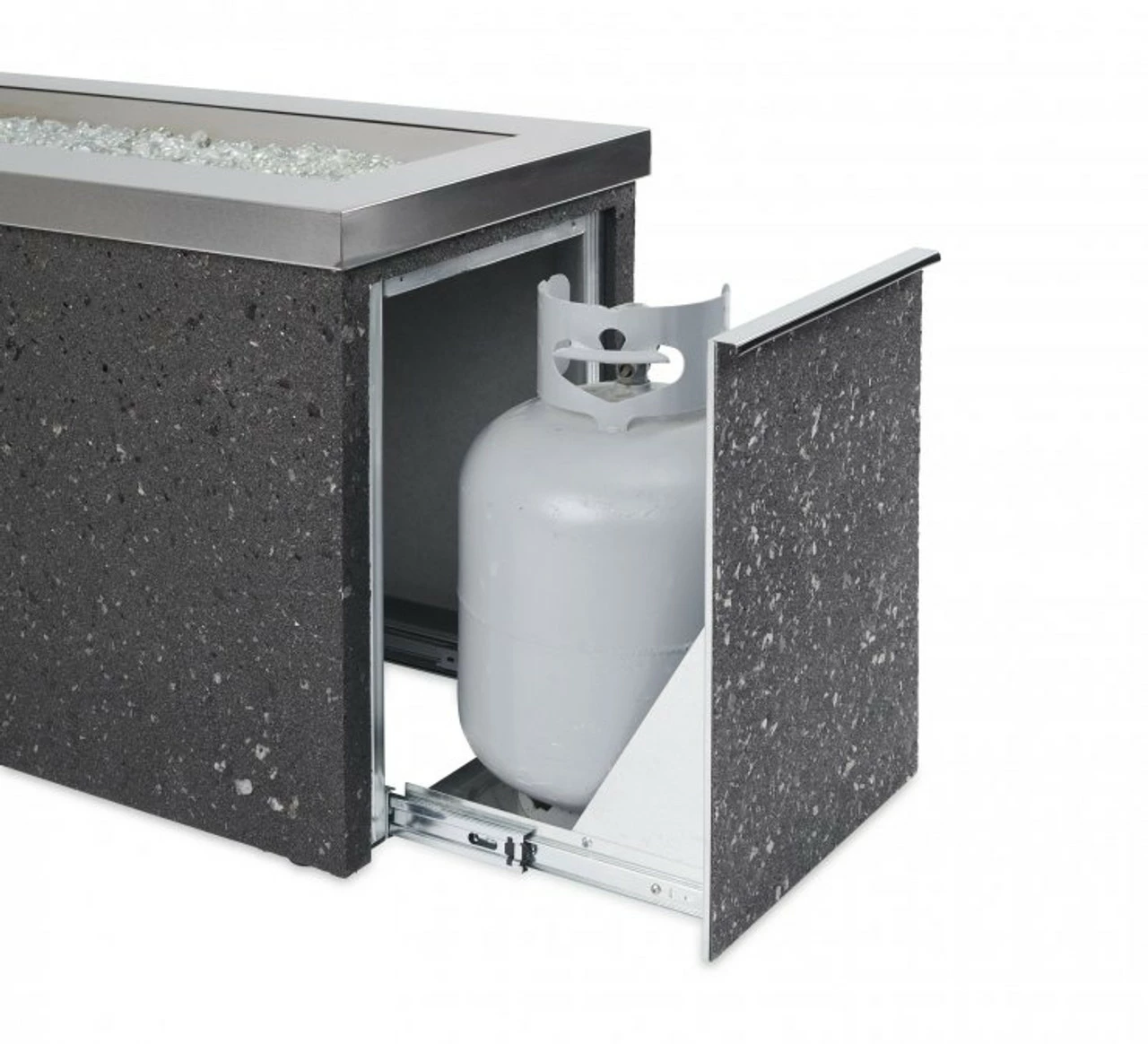 - Sliding access door conceals standard 20 lb. propane tank in base