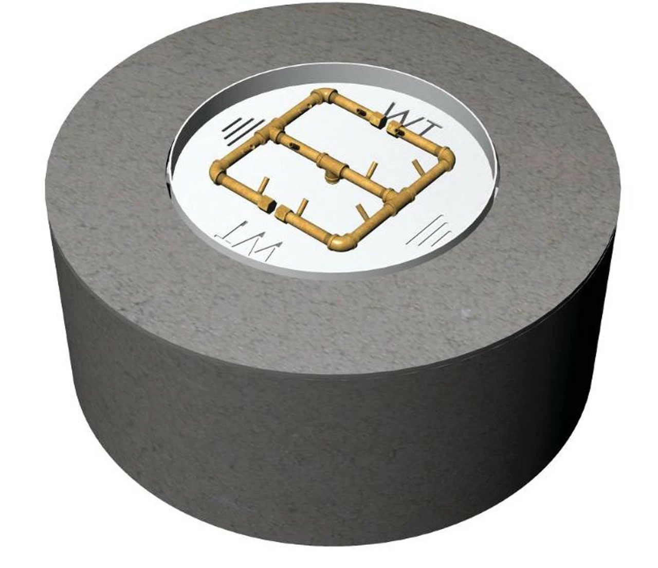 The Round Fire Pit Kit, is the perfect fire pit kit to help build that dream Fire pit. Made with an aluminum frame and finished with a concrete board surrounding. The FC comes with a standard aluminum pan and burner.ย