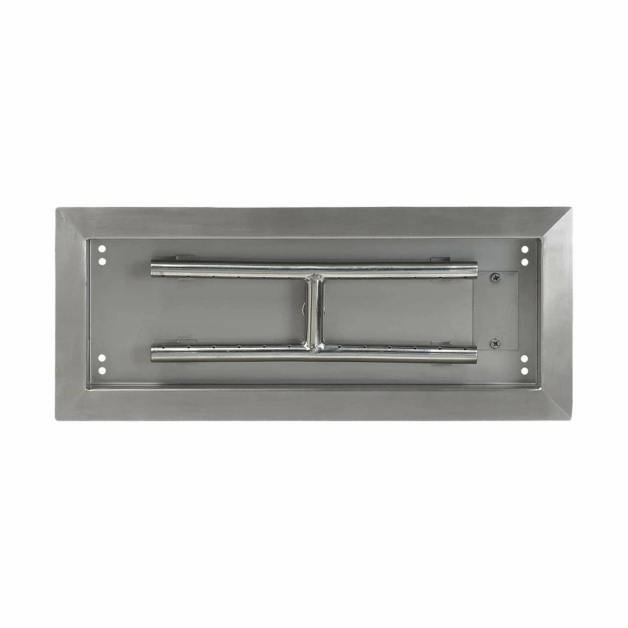 - Fire glass capacity: 18″ = 20lbs ; 24″ = 25lbs ; 30″ = 35lbs ; 36″ = 50lbs ; 48″ = 80lbs ; (not included)