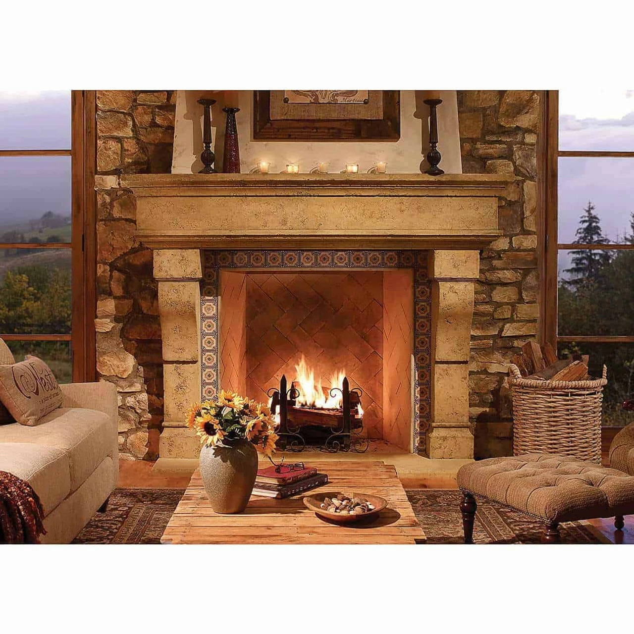 Surrounds are available in four colors designed to represent various types of natural limestone. Choose from Honed, a smooth surface or Travertine, a more textured surface. Both include color and texture variations, providing the authentic character and attributes of natural stone. Antique Castello is a distinctive color and finish for a more distressed and aged appearance often found in classical architecture.